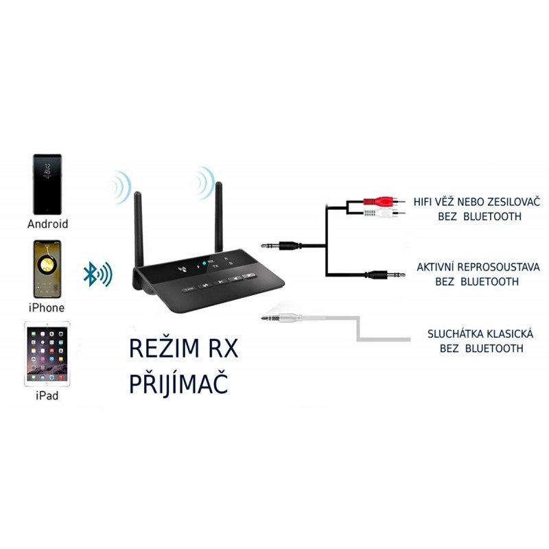 Může sloužit jako vysílač nebo jako přijímač bluetooth audio signálu . Je vybaven AUX / JACK stereo konektory . Osazeno čipem Qualcomm s AptX LL. Vybaveno dobíjitelnou baterií 500 mAh .